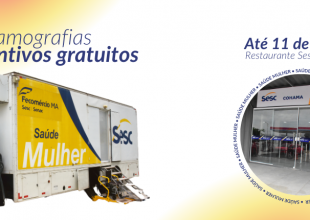 O Sesc Saúde Mulher continua em São Luís, dessa vez no bairro Renascença, no período de 26 e 29 de maio. Atendendo comerciárias e mulheres da comunidade, a Unidade Móvel ficará instalada em frente ao Condomínio Fecomércio/Sesc/Senac, ofertando exames gratuitos de mamografia para mulheres de 50 a 69 anos (sem encaminhamento médico) e de 35 […]