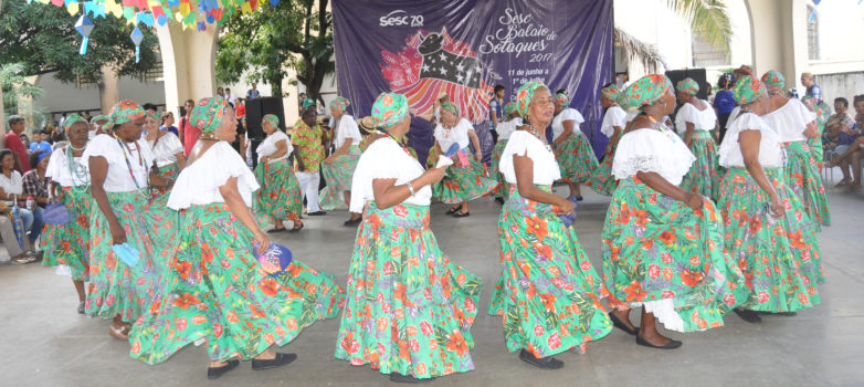 E foram as idosas que abriram a programação. As Grupo de Teatro Dança formado por integrantes do Sesc Deodoro apresentaram a Dança da Peneira em seguida, as idosas do Sesc Turismo encantaram com a Dança do Arco.