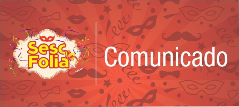 O Serviço Social do Comércio no Maranhão vem informar que a divulgação do resultado do EDITAL DE CREDENCIAMENTO Nº 01/2018 – PROPOSTAS ARTÍSTICO-CULTURAIS PARA AÇÕES DO PROJETO “SESC FOLIA – CARNAVAL DO COMERCIÁRIO”, NAS CIDADES DE SÃO LUIS E RAPOSA foi adiado por motivos técnicos para o dia 25/01/2018.