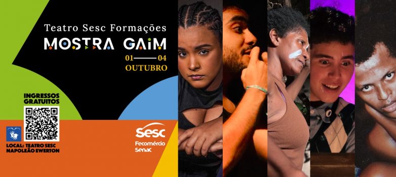 O Gaim é uma iniciativa do Sesc que visa capacitar e desenvolver artistas independentes nas áreas de música, dança e teatro. Iniciado em março, chegou a hora de celebrar o resultado de meses de formação! De 01 a 04 de outubro, o Teatro Sesc Napoleão Ewerton recebe a Mostra GAIM, última etapa do projeto Teatro Sesc Formações. Os alunos apresentarão os espetáculos inéditos: “Flor de Mulungu”, “Entre-linhas”, ” Raízes”, “O Baú da Vó Catarina” e “A-mar”. Toda a programação é gratuita. Os ingressos devem ser adquiridos na plataforma Sympla.