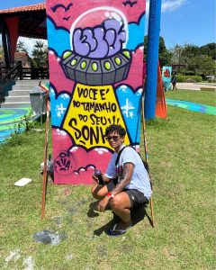 Geiza Soares une graffiti, ilustração e educação em um trabalho que valoriza o lúdico e a imaginação infantil. Já Edi Bruzzaca traz a experiência da arte visual e do graffiti, conectando ancestralidade, cultura popular e ativismo nas ruas. Ambas colaboram para fortalecer a cena cultural maranhense por meio de ações formativas que estimulam a expressão artística e o senso crítico.