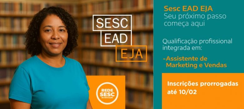 O Sesc Maranhão prorrogou as inscrições, até 10 de fevereiro, para a turma do Ensino Médio, Educação de Jovens e Adultos (EJA), na modalidade Educação à Distância (EAD). Além do diploma de conclusão do Ensino Médio, os participantes também sairão com uma qualificação profissional integrada, voltada às áreas de marketing e vendas, ampliando as possibilidades de atuação no mercado de trabalho.