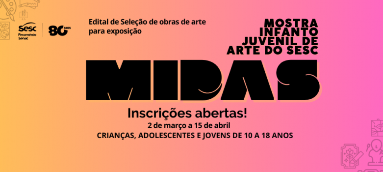 Estão abertas as inscrições para o edital de seleção da Mostra Infantojuvenil de Arte do Sesc – Midas 2026. A iniciativa é voltada para crianças e jovens maranhenses entre 10 e 18 anos, que tenham interesse em apresentar suas produções artísticas ao público. As inscrições podem ser realizadas até o dia 15 de abril.