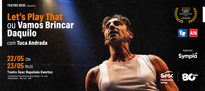 O Teatro Sesc Napoleão Ewerton abre as cortinas para receber o ator Tuca Andrada, com o espetáculo “Let’s Play That ou Vamos Brincar Daquilo”, solo inspirado no livro “Torquatália”, de Paulo Roberto Pires, antologia que reúne toda a produção de Torquato Neto, um dos mais importantes pensadores, artistas e provocadores da cultura brasileira nos anos 1960/70. Com classificação indicativa de 16 anos, o espetáculo conta com duas sessões, no dia 22 de maio, às 20h, e 23 de maio, às 19h30, com ingressos disponíveis no Sympla.